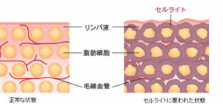 セルライトができる原因として、脂肪細胞が多量に蓄積する場合や血行不良、あるいは代謝機能低下などが考えられます。